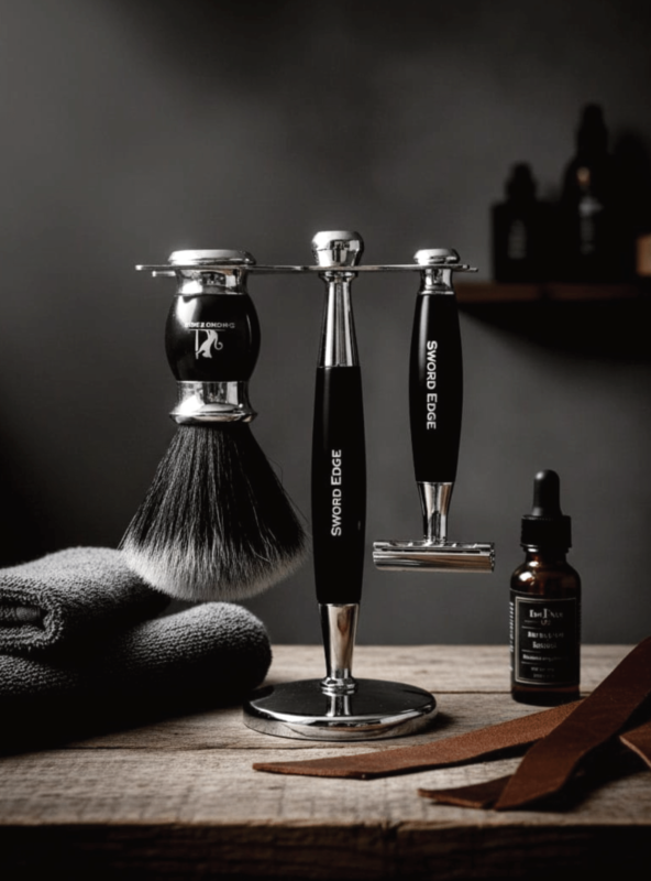 The Sword Edge shaving set combines style, quality, and practicality into a beautifully crafted package. It’s not just a gift but an indulgence that promises a pampered and polished shaving experience for those who value both aesthetics and performance in their grooming routine.